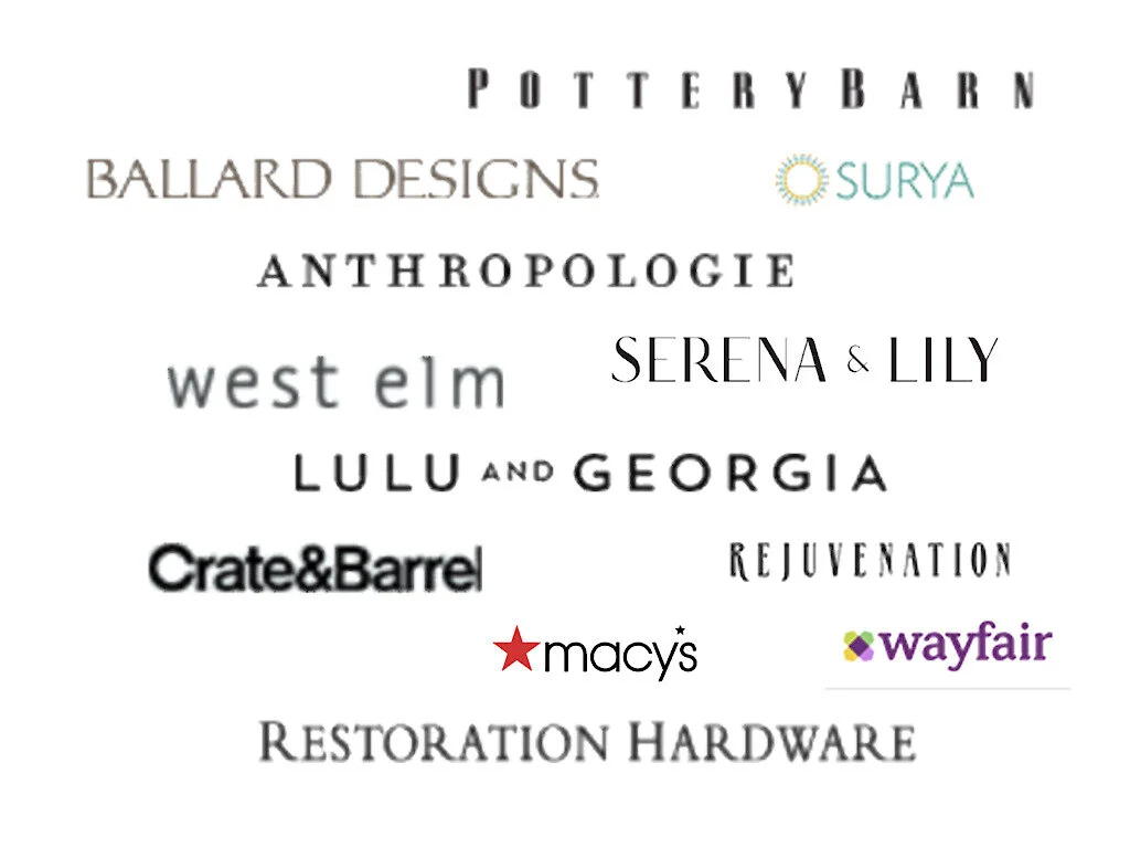 This is just a small sample of retail shops my clients like and are familiar with, but I offer access to Trade Only sources as well for Full Service Interior Design clients.